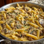 Creamy Velveeta Beef Stroganoff and Penne Pasta