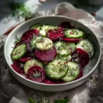 A refreshing salad combining crunchy cucumbers and sweet beetroots, perfect for a light meal or side dish.