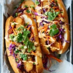 - Slice the baguettes and spread the sauce on each side. Layer in the crispy schnitzel, the cabbages, carrots, cilantro, and jalapeños if you like some heat. Drizzle with more sauce.