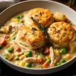 A comforting and easy chicken pot pie made in a crockpot, featuring tender chicken, hearty vegetables, and a flaky pie crust.
