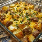 A cozy and creamy dish combining tender steak, creamy potatoes, and melted cheese, perfect for busy days or family gatherings.