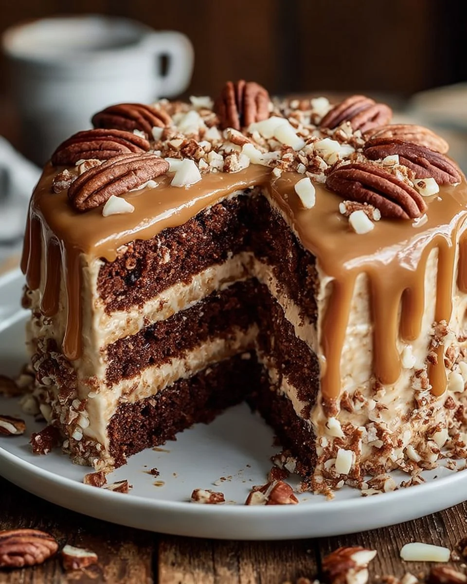 Decadent Chocolate Caramel Pecan Cake is a delightful dessert that combines rich chocolate, smooth caramel, and crunchy pecans. This cake is perfect for any occasion, whether it’s a birthday, holiday, or just a cozy night in. Each bite offers a wonderful mix of flavors and textures that will satisfy any sweet tooth.