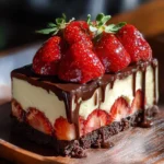 A rich cheesecake that combines smooth chocolate and fresh strawberries, creating a delightful treat for any occasion.