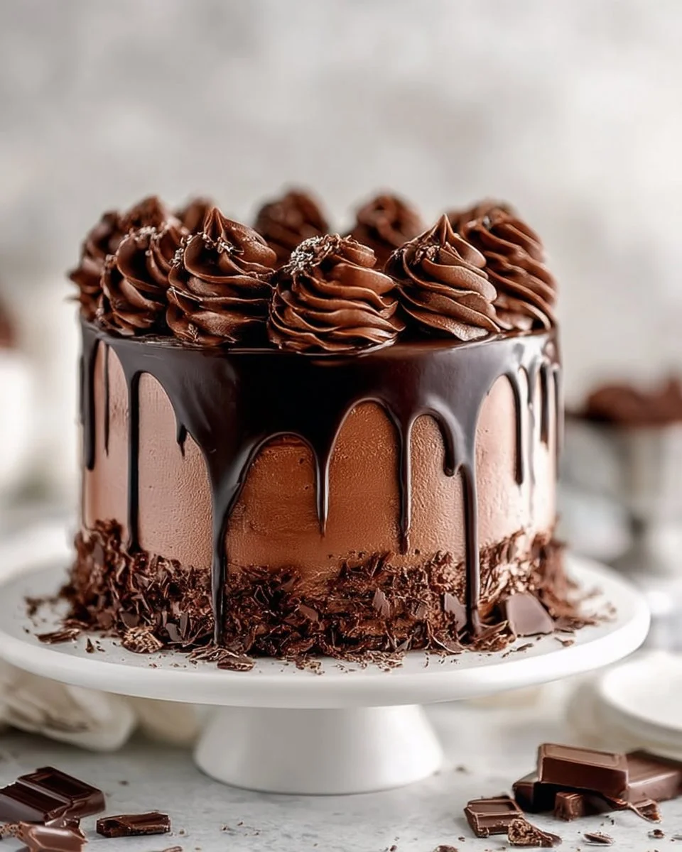 A rich and fudgy chocolate cake drizzled with luscious chocolate ganache, perfect for any celebration.