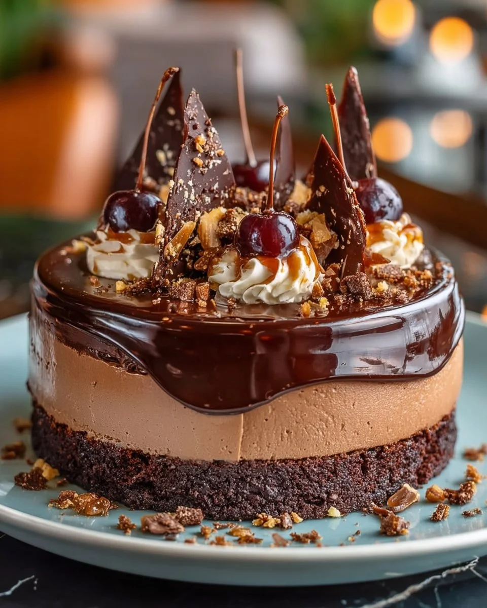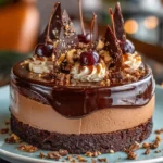 A creamy, rich dessert combining the flavors of German chocolate cake in a no-bake cheesecake form. Topped with chocolate ganache, it’s a delightful treat for any occasion.