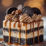 If you love desserts that combine rich flavors and textures, then the Decadent Peanut Butter Oreo Chocolate Delight Cake is for you! This cake has a crunchy cookie crust, a creamy peanut butter filling, a smooth chocolate ganache, and a fluffy whipped cream topping. It’s a showstopper dessert that’s perfect for special occasions or a delicious treat at home.