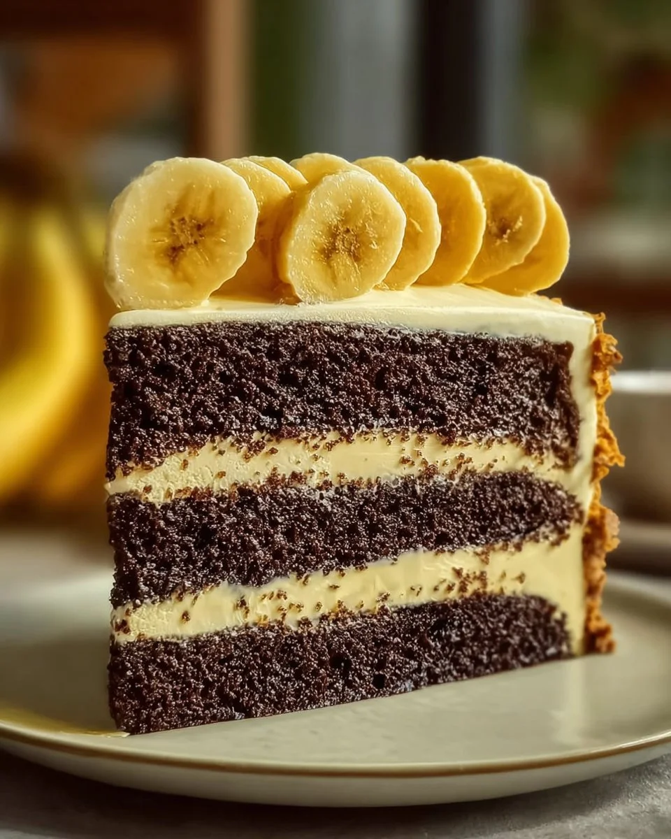 Enjoy baking and indulging in this delightful Double Chocolate Banana Layer Cake!