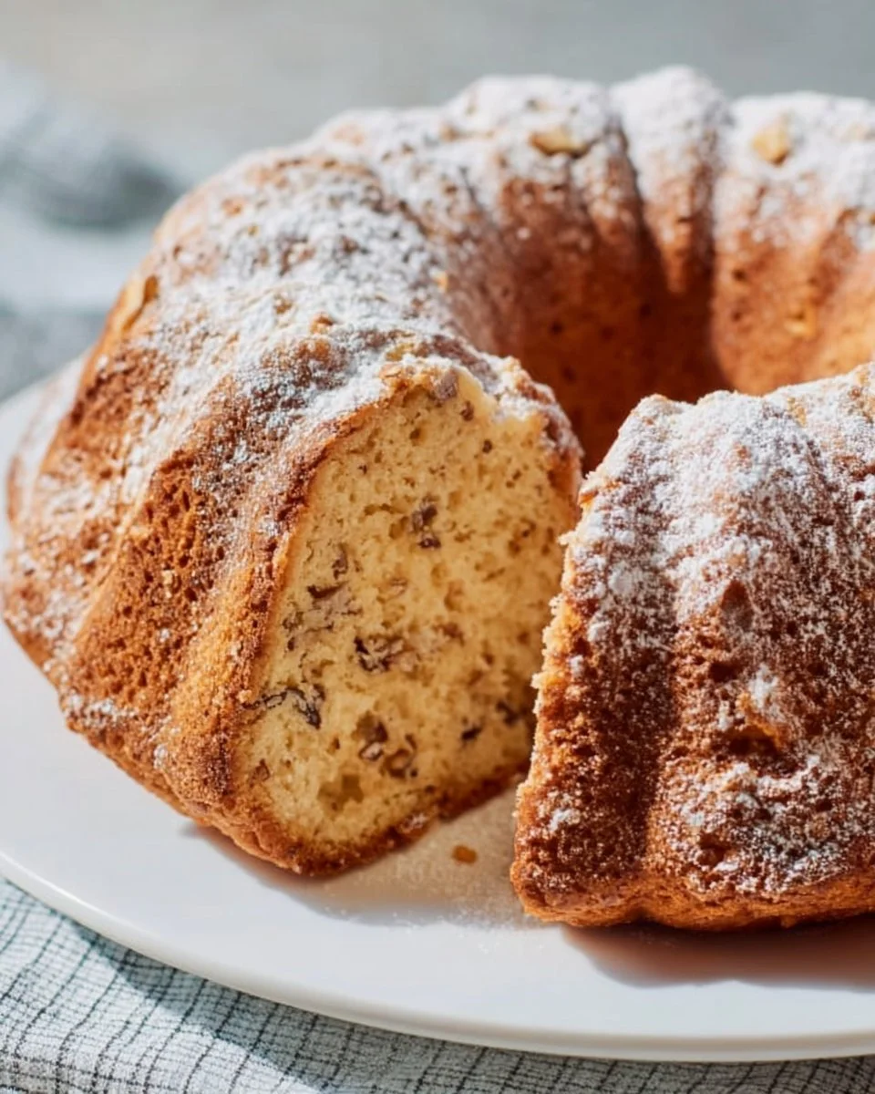 Once the cake is baked and cooled, you can dust it with powdered sugar for a lovely finishing touch. Slice the cake and serve it on individual plates. This cake pairs beautifully with a scoop of vanilla ice cream or a dollop of whipped cream to enhance the experience.
