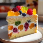 A delightful eggless dessert featuring fluffy layers and vibrant fruits, perfect for celebrations or as a sweet treat any day.