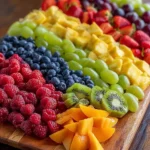 - Arrange the fruits on a large serving platter, grouping similar colors together for a festive look.