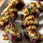 Delicious stuffed dates with creamy feta, rich Parmesan, and crunchy walnuts, perfect for a snack or appetizer.