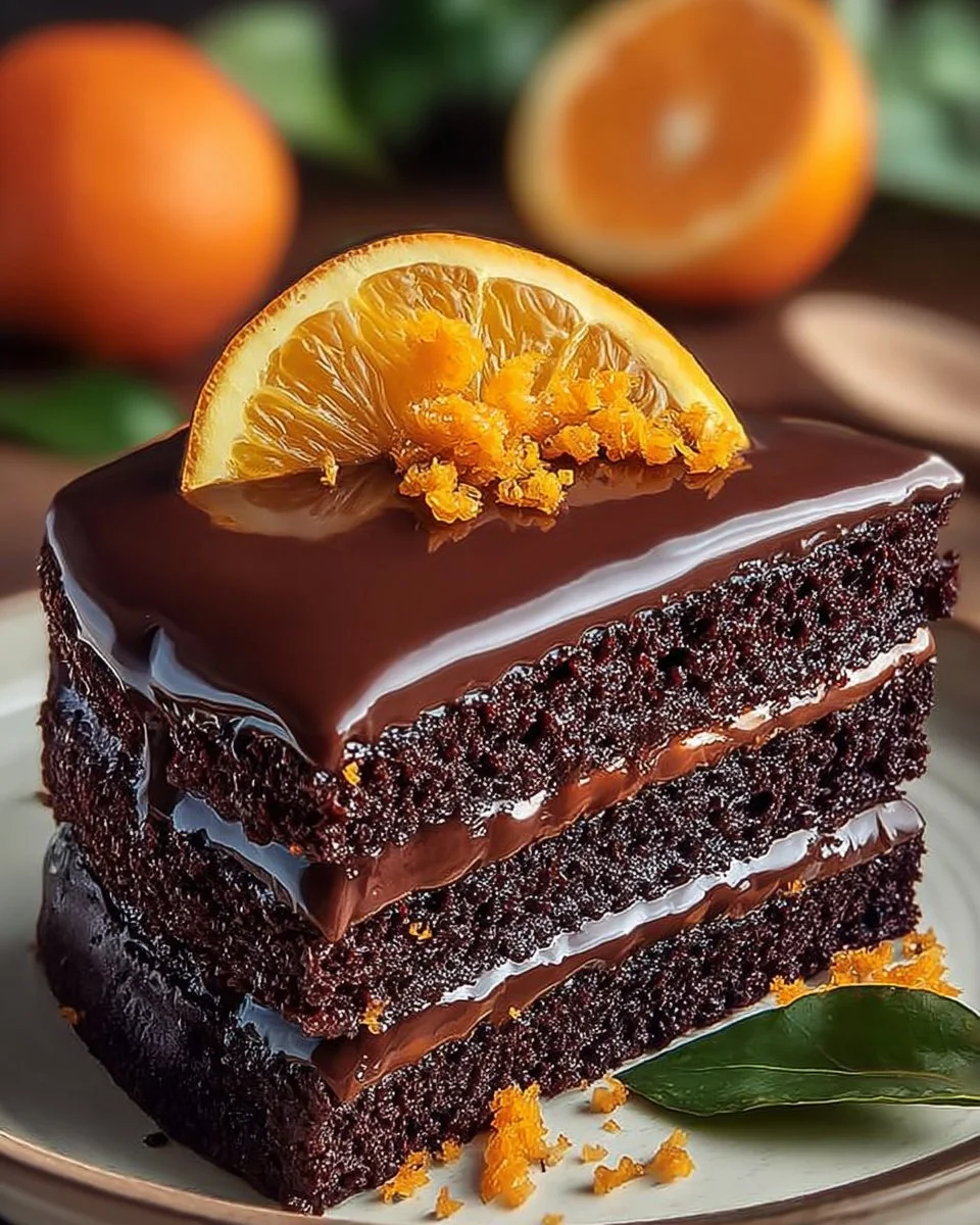 10. Pour the ganache over the cooled cake and spread it evenly. Garnish with an orange slice and orange zest if desired.