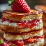 Delicious fried sandwiches filled with creamy cheesecake and fresh strawberries, perfect for dessert or breakfast.