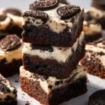 Delicious brownies combining rich chocolate with crunchy Oreos, topped with creamy white chocolate.