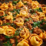 Garlic Butter Beef Tortellini Skillet with Spinach and Parmesan is a comforting and easy dish perfect for any night of the week. With its rich flavors and creamy texture, this one-pan meal combines tender tortellini with savory ground beef, fresh spinach, and a sprinkle of Parmesan cheese. It’s not only delicious but also quick to prepare, making it a fantastic choice for busy families or anyone looking for a satisfying dinner.