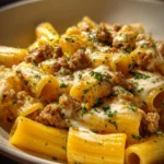 Garlic Butter Ground Beef Rigatoni in Creamy Cheese Sauce is a comforting and delicious dish that combines tender pasta with savory beef and a rich cheese sauce. This recipe is perfect for any night of the week when you’re craving something hearty and satisfying. With just a few ingredients and easy steps, you can create a meal that will please the whole family.
