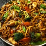 Garlic Chicken Lo Mein is a delicious and easy-to-make dish that brings the flavors of Chinese cuisine right into your kitchen. It’s a quick stir-fry meal filled with tender chicken, crunchy vegetables, and flavorful noodles. This dish is perfect for a busy weeknight or a casual gathering with friends and family.
