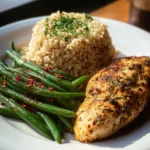 This recipe is great because it combines flavor, nutrition, and ease. The chicken is seasoned with herbs that add a savory touch, while rice serves as a hearty base. Fresh green beans provide a pop of color and a healthy crunch. Plus, it doesn’t take a lot of time to prepare, making it an excellent choice for anyone looking to make a quick yet satisfying meal.