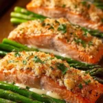 Serve the Garlic Parmesan Crusted Salmon and Asparagus right out of the oven. You can pair it with a side of rice or a simple green salad. A squeeze of lemon juice on top can enhance the flavors further. It’s a complete meal that looks beautiful on the plate.