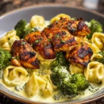 A delicious and comforting dish combining tender chicken, fresh broccoli, and cheese-filled tortellini in a rich and creamy garlic Parmesan sauce.