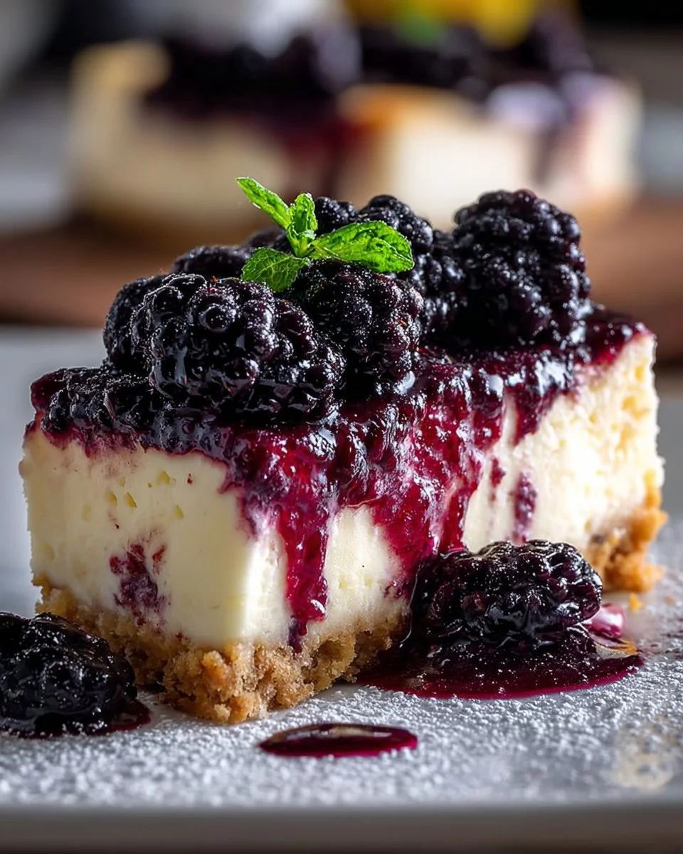 A delightful dessert combining tangy blackberries and apples with a smooth cheesecake filling, topped with a crunchy crumble, enhanced by the addition of gin.