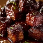 Delicious and easy-to-make bite-sized steak cubes coated in a sweet and tangy barbecue glaze, perfect for any occasion.