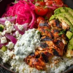 The Greek-Style Chicken Bowl with Feta, Tzatziki & Pickled Onion is a delicious and vibrant dish that brings the flavors of the Mediterranean straight to your kitchen. This bowl is not just tasty, but it’s also packed with fresh ingredients that make it a healthy choice for lunch or dinner. With juicy grilled chicken, creamy tzatziki, and tangy pickled onions, every bite is full of flavor!