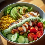 This recipe is great for several reasons. First, it’s quick and easy to make, perfect for busy weeknights. Second, it is loaded with healthy ingredients, like grilled chicken and fresh veggies, giving you a balanced meal in one bowl. Finally, the combination of flavors, including creamy avocado and zesty dressing, makes it delicious and satisfying.