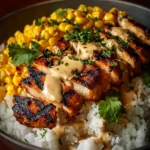 The Grilled Chicken Rice Bowl with Creamy Cilantro is a simple yet satisfying meal. It combines juicy grilled chicken with fluffy rice and a refreshing drizzle of creamy cilantro dressing. This dish is perfect for lunch or dinner and can be enjoyed by everyone in the family!