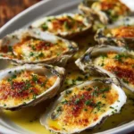 Grilled Parmesan Garlic Oysters are a delicious seafood dish topped with a flavorful garlic and Parmesan mixture, perfect as an appetizer or a light meal.