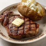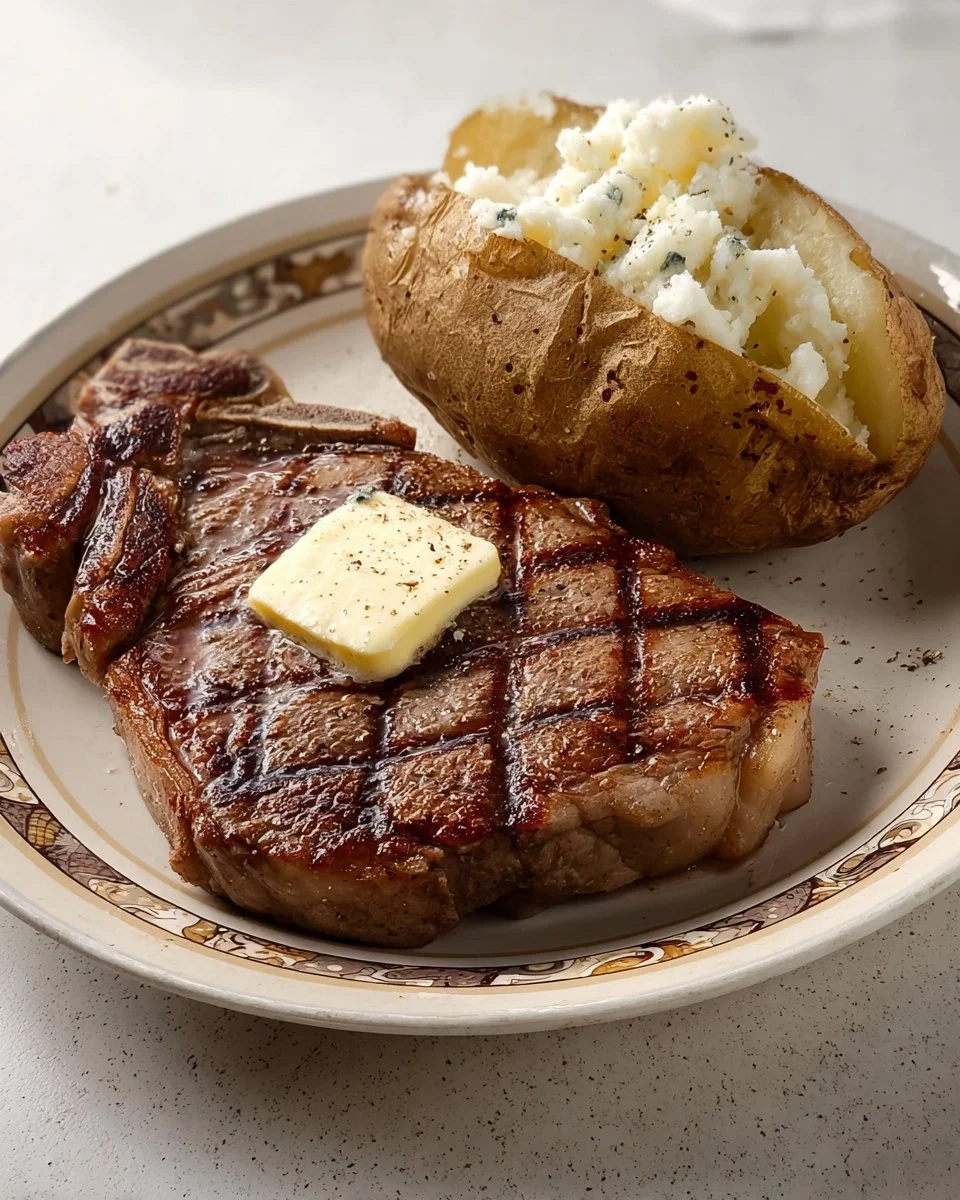 Grilled T-bone steak with baked potato is a classic meal that many enjoy. It combines the juicy richness of the steak with the comforting texture of a baked potato. This recipe is perfect for anyone looking for a satisfying dinner that is easy to prepare.