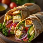Halloumi & Roasted Veggie Pita Wraps are a delightful and satisfying dish. This recipe combines sliced, golden halloumi cheese with a mix of roasted vegetables, all wrapped in warm pita bread. It’s perfect for lunch or dinner and is easy to make.