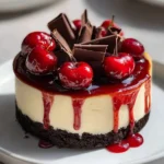 A rich and creamy dessert that combines chocolate, cheesecake, and cherries, perfect for any occasion.