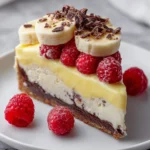 Before serving, garnish with whipped cream, additional banana slices, maraschino cherries, and chocolate pieces for an extra-special presentation. Slice and enjoy your No-Bake Banana Split Cheesecake!