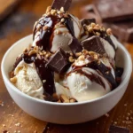 Add the Mix-Ins: During the last 5 minutes of churning, add the chopped peanut butter cups and chocolate chips to the ice cream. Once the ice cream is fully churned, gently swirl the chocolate fudge sauce into the mixture with a spatula to create ribbons of fudge.