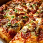 Delicious homemade pizza with a crispy crust, gooey cheese, and customizable toppings.
