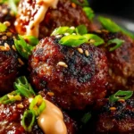 - Once the meatballs are done, drizzle the spicy mayo sauce over them or serve it on the side. Garnish with chopped green onions.