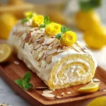 A delightful dessert combining zesty lemon and nutty almond flavors, rolled with a creamy filling, perfect for special occasions.