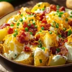 A twist on classic potato salad, combining the flavors of a baked potato with crispy bacon, rich cheese, and fresh green onions.