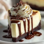 A creamy and chocolatey cheesecake that beautifully combines rich chocolate and smooth vanilla flavors, perfect for any occasion.