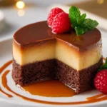A delightful Mexican dessert combining creamy flan and rich chocolate cake, known for its unique texture and magical transformation while baking.
