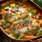 Mediterranean-Style Baked Cod with Vegetables & Creamy Sauce is a delightful dish that brings the flavors of the Mediterranean right to your kitchen. This recipe features tender cod fillets cooked with fresh vegetables, all coated in a creamy sauce. It’s not only delicious but also healthy, making it a perfect choice for a family dinner or a special occasion.