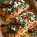 Mediterranean Baked Salmon with Feta & Sun-Dried Tomatoes is a delicious and healthy dish that brings the taste of the Mediterranean right to your dinner table. This dish combines tender, flaky salmon with the bold flavors of feta cheese and sun-dried tomatoes, all baked together for a satisfying meal. Whether you’re looking for a quick weeknight dinner or something special for guests, this recipe is sure to impress.