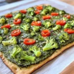 Mediterranean Broccoli & Cherry Tomato Pesto Flatbread is a delicious and healthy dish that brings a burst of flavor to your table. This recipe combines the freshness of broccoli and cherry tomatoes on a crispy flatbread base, drizzled with rich olive oil and topped with optional spices. It’s perfect for a quick lunch, snack, or even as a light dinner.