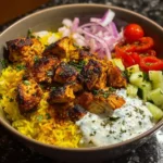 The Mediterranean Chicken & Yellow Rice Bowl is a vibrant and flavorful dish that brings the essence of the Mediterranean right to your kitchen. Packed with healthy ingredients, this recipe combines tender chicken, seasoned yellow rice, fresh vegetables, and tangy tzatziki sauce. It’s not just a meal; it’s a celebration of fresh flavors and nutritious foods.