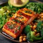 The Mediterranean Grilled Salmon Power Bowl is a delicious and healthy meal option that combines the rich flavors of grilled salmon with fresh vegetables and grains. This bowl is not only satisfying but also packed with nutrients to fuel your day. It’s perfect for lunch or dinner and is easy to prepare.
