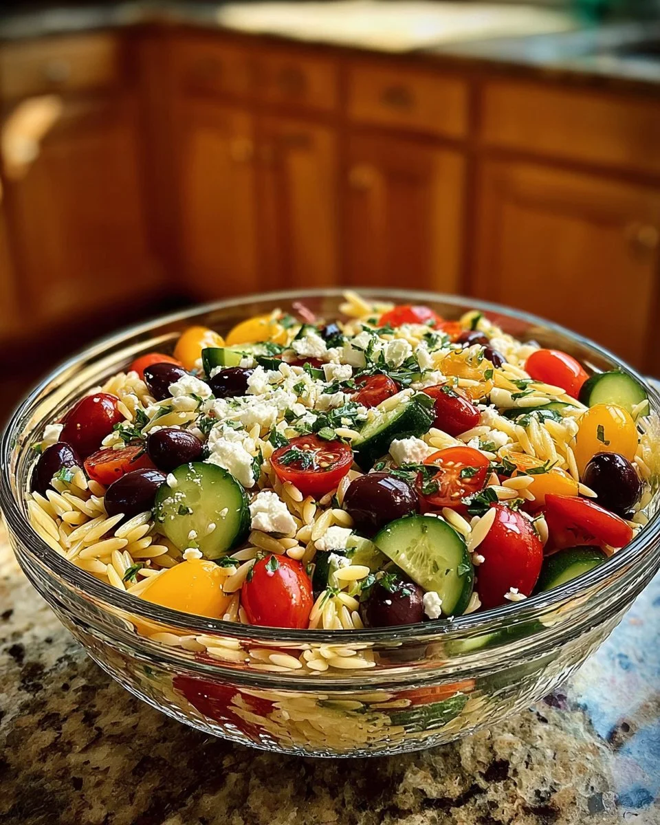 Mediterranean Orzo Salad is a colorful and tasty dish that brings the fresh flavors of the Mediterranean right to your table. Perfect for a light lunch or a side dish at gatherings, this salad is not just delicious but also easy to make.