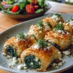 Crispy pastry rolls filled with fresh spinach and creamy cheeses, perfect as appetizers or light meals.