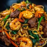 This recipe is perfect for anyone looking to enjoy a satisfying meal without spending hours in the kitchen. The blend of protein from the steak and shrimp, along with fresh spinach and tomatoes, creates a well-balanced dish. Plus, it’s easy to adapt based on what you have in your pantry. Whether you’re looking for a family dinner or a dish to impress guests, Mediterranean Steak & Shrimp Noodles is sure to be a hit.