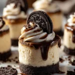 Delicious mini desserts featuring a crunchy Oreo crust and a creamy cheesecake filling, perfect for any occasion.